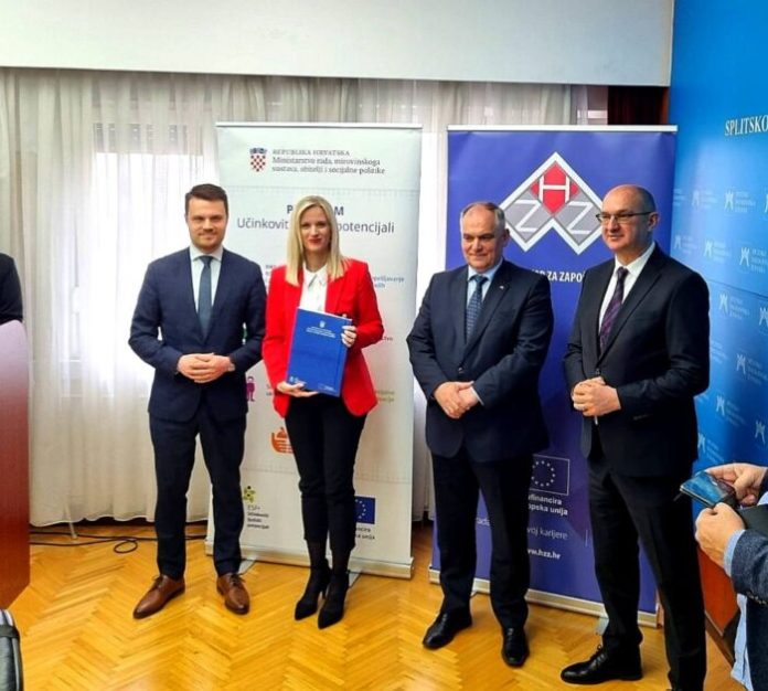 Ugovore su korisnicima uručili državni tajnik Ivan Vidiš, župan Splitsko-dalmatinske županije Blaženko Boban i ravnatelj Hrvatskog zavoda za zapošljavanje Ante Lončar.