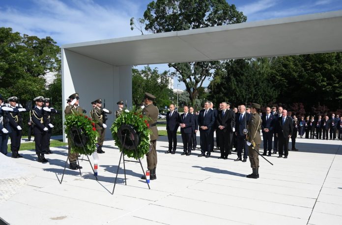 Predsjednik Vlade Andrej Plenković i članovi Vlade sudjeluju danas u obilježavanju Dana državnosti, koje je započelo polaganjem vijenaca kod Spomenika domovini.