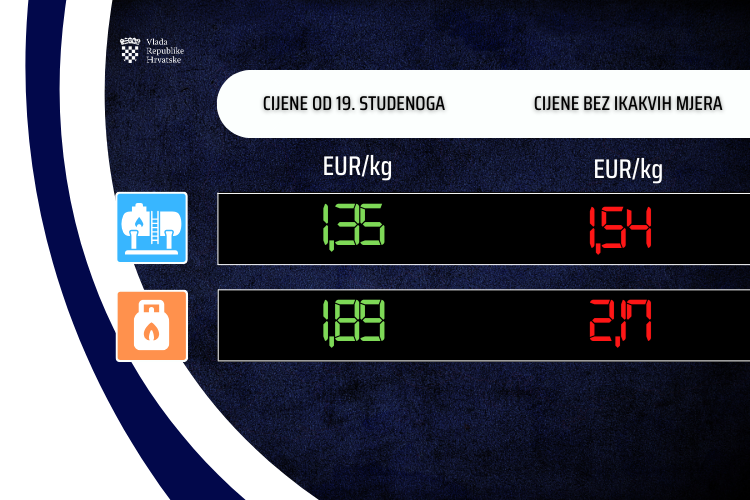 Danas je održana telefonska sjednica Vlade Republike Hrvatske na kojoj je donesena Uredba o utvrđivanju najviših maloprodajnih cijena naftnih derivata sukladno kojoj se najviše maloprodajne cijene računaju po formuli prema osnovnoj cijeni fosilnog goriva u prethodnom 14 dnevnom razdoblju, s ograničenom premijom od 0,1545 EUR/l za dizelsko i benzinsko gorivo, te 0,0781 EUR/l za plavi dizel, a u iznosu 0,8429 EUR/kg smjesa propan – butan za boce, odnosno 0,4116 EUR/kg za velike spremnike.Uredba stupa na snagu 19. studenoga 2024. godine, a ovakav režim vrijedit će za sljedeće 14 dnevno razdoblje.