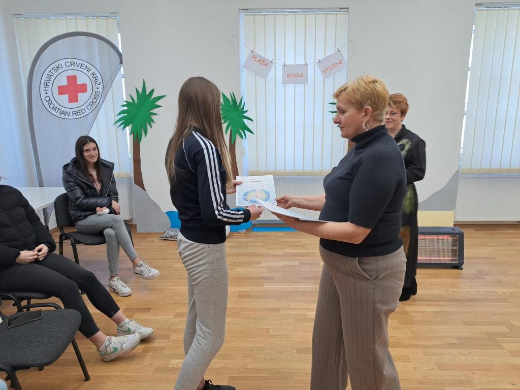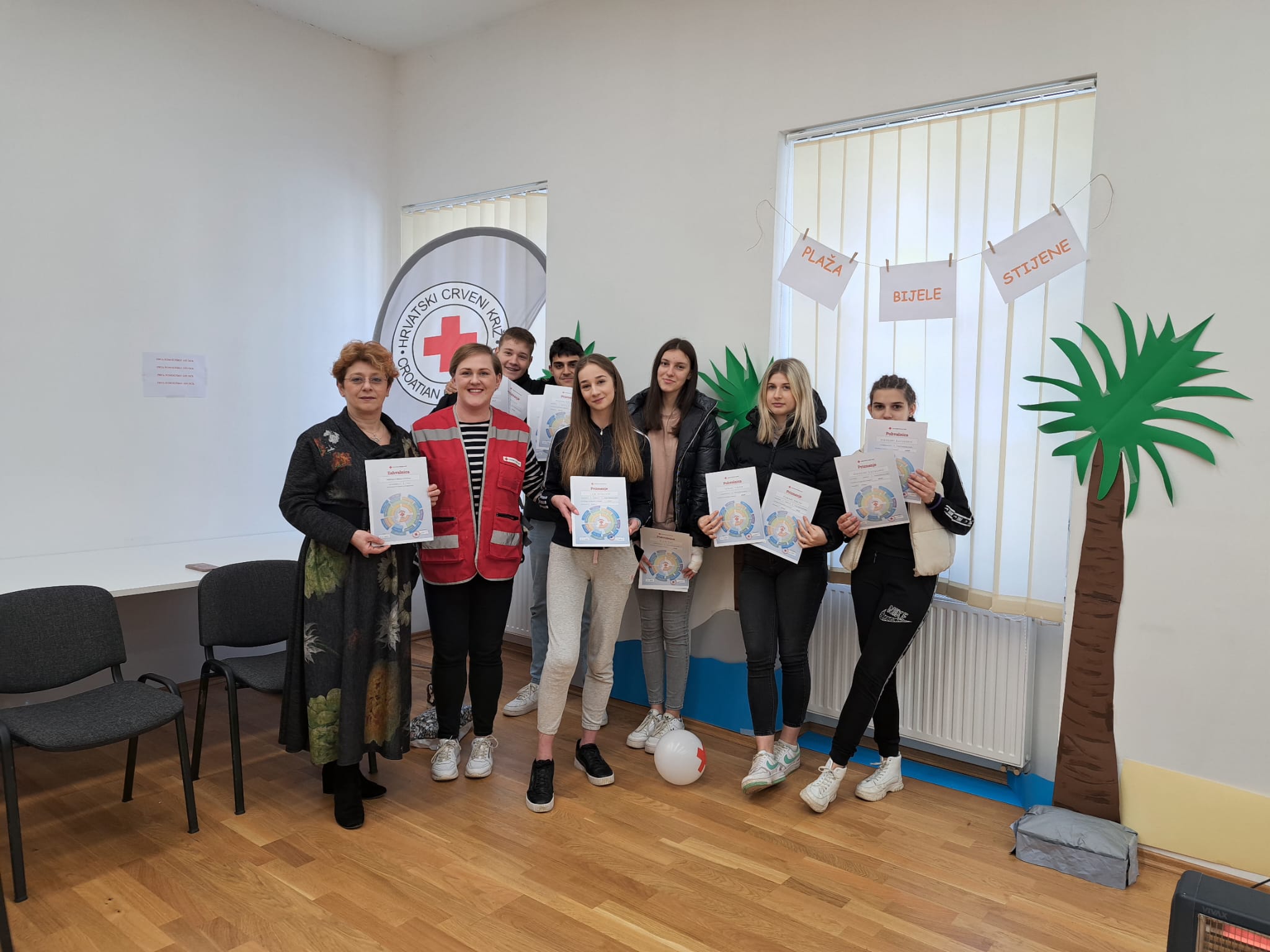 Tamara Vrcelj, Lana Žubrinić, Nikolina Katalinić, Bojan Katalinić, Matea Noć i Ante Vujić provjerili su svoje naučene i usvojene vještine i znanja koja život znače, od općih informacija o Međunarodnom pokretu Crvenog križa i Crvenog polumjeseca i Hrvatskom Crvenom križu, osnova međunarodnog humanitarnog prava i Ženevskih konvencija, ljudskih prava i prava djeteta, do pružanja prve pomoći. Suočili su se na radilištima s realistično prikazanim situacijama i ozljedama. Na pravilan su način pružili pomoć, prepoznali i sanirali ozljede te pružili psihosocijalnu podršku.