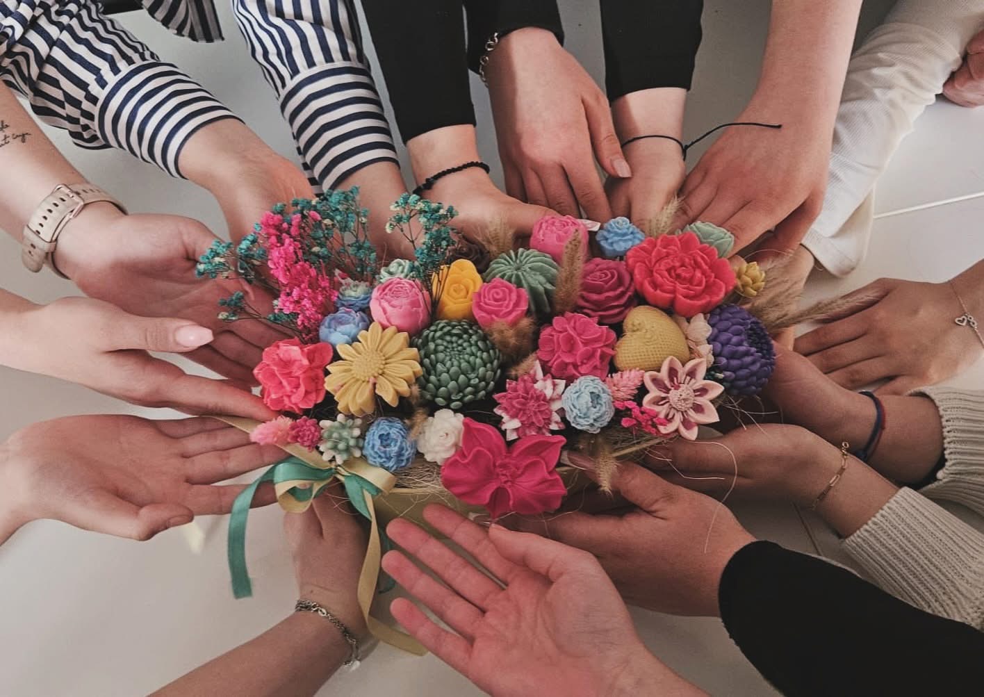 Vesela i kreativna atmosfera na radionici izrade unikatnih aranžmana