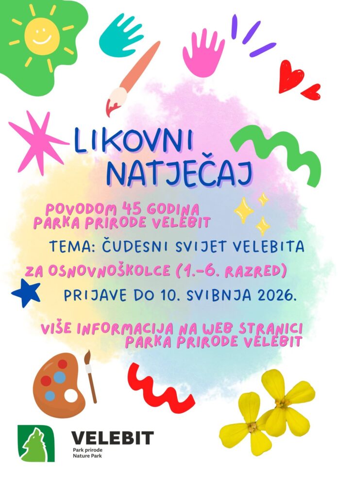Javna ustanova Park prirode Velebit raspisuje kreativni likovni natječaj za učenike osnovnih škola. Natječaj je organiziran povodom obilježavanja 45 godina zaštite Parka prirode Velebit.