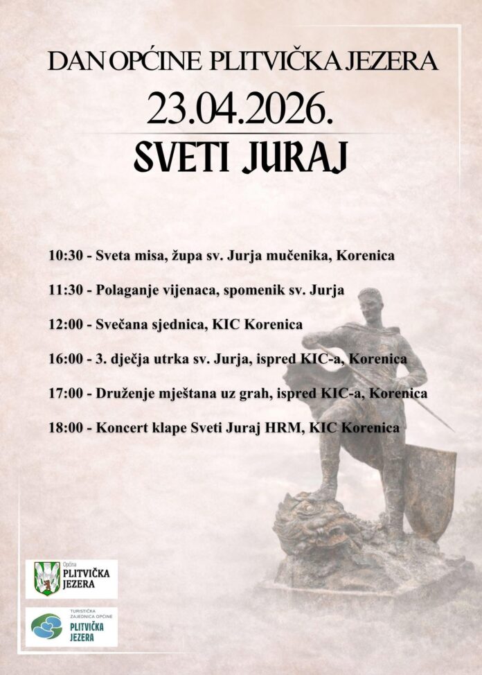 S ponosom najavljujemo obilježavanje Dana Općine Plitvička Jezera i blagdana svetog Jurja, koje će se održati 23. travnja 2026. godine u Korenici.