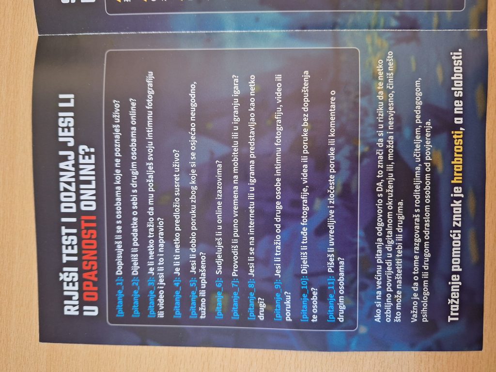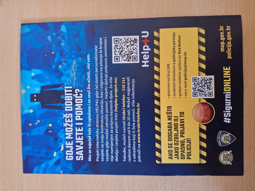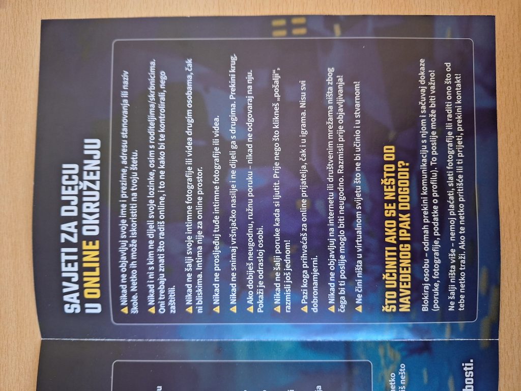 Na kraju predavanja učenicima su ponudile edukativne brošure na temu sigurnog ponašanja u digitalnom okruženju te ih još jednom potaknule na sigurno korištenje digitalnih platformi.