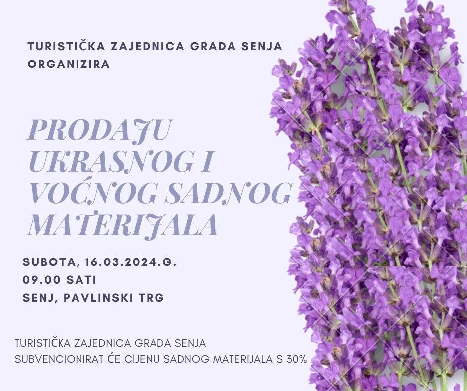 Turistička zajednica grada Senja u suradnji s Upravom šuma Senj i RJ Rasadnik Podbadanj održat će u subotu 16. ožujka 2024. godine akciju prodaje ukrasnog i voćnog sadnog materijala.