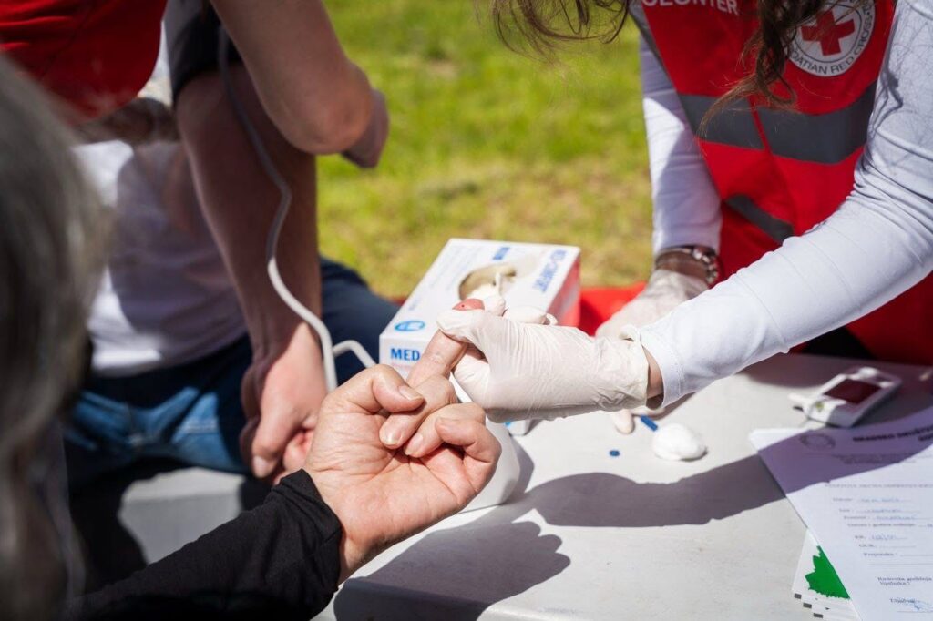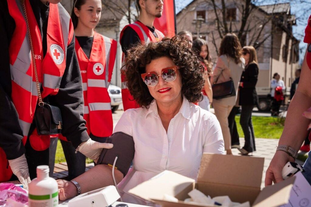 Program posjeta nastavljen je u Parku Crvenog križa, gdje su volonteri proveli preventivne zdravstvene akcije mjerenja razine šećera u krvi i krvnog tlaka, čime je dodatno naglašena važnost dostupnosti osnovnih zdravstvenih usluga u manjim sredinama.