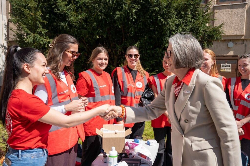 GOSPIĆ – Predsjednica Međunarodne federacije društava Crvenog križa i Crvenog polumjeseca (IFRC) Kate Forbes boravi danas u Gospiću gdje je, zajedno s delegacijom Hrvatskog Crvenog križa, obišla aktivnosti Gradskog društva Crvenog križa Gospić te se susrela s korisnicima, volonterima i djelatnicima.