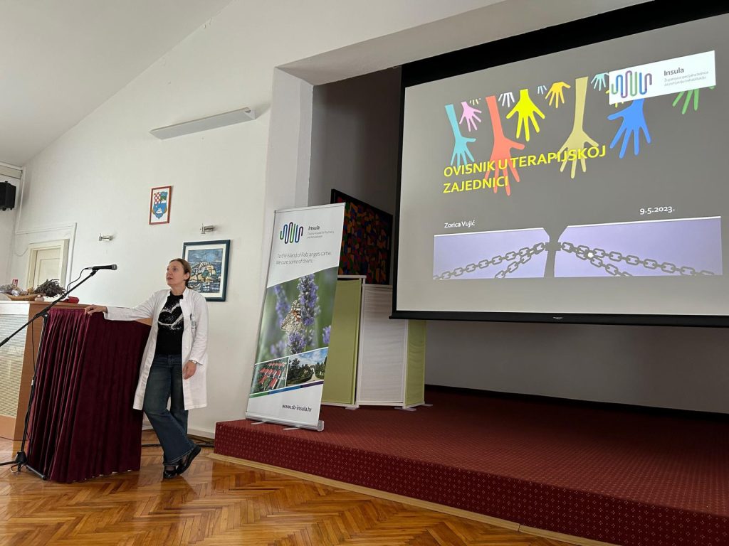 Srdačno su nas dočekale i održale predavanje o ovisnostima jedna od doktorica bolnice i glavna medicinska sestra. Imali smo priliku vidjeti prostore u kojima pacijenti borave, a predstavljene su nam i aktivnosti kojima se bave, između ostalih, i izrada proizvoda od lavande koje smo dobili za poklone. Nakon obilaska bolnice i upoznavanja s djelokrugom njezina rada uputili smo se u obližnji restoran gdje smo ručali i odmorili se. Nakon ručka uslijedio je posjet gradu Rabu.