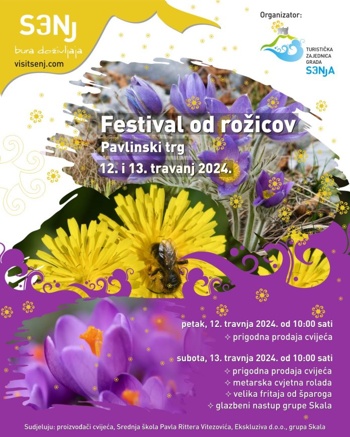 Turistička zajednica grada Senja organizira 12. i 13. travnja 2024.g. Festival od rožicov. Festival će se održati na Pavlinskom trgu u Senju, a u sklopu festivala predstavit će se proizvođači cvijeća koji u svojoj ponudi imaju razne vrste cvijeća, sadnica, sezonskog bilja i vrtnog programa.