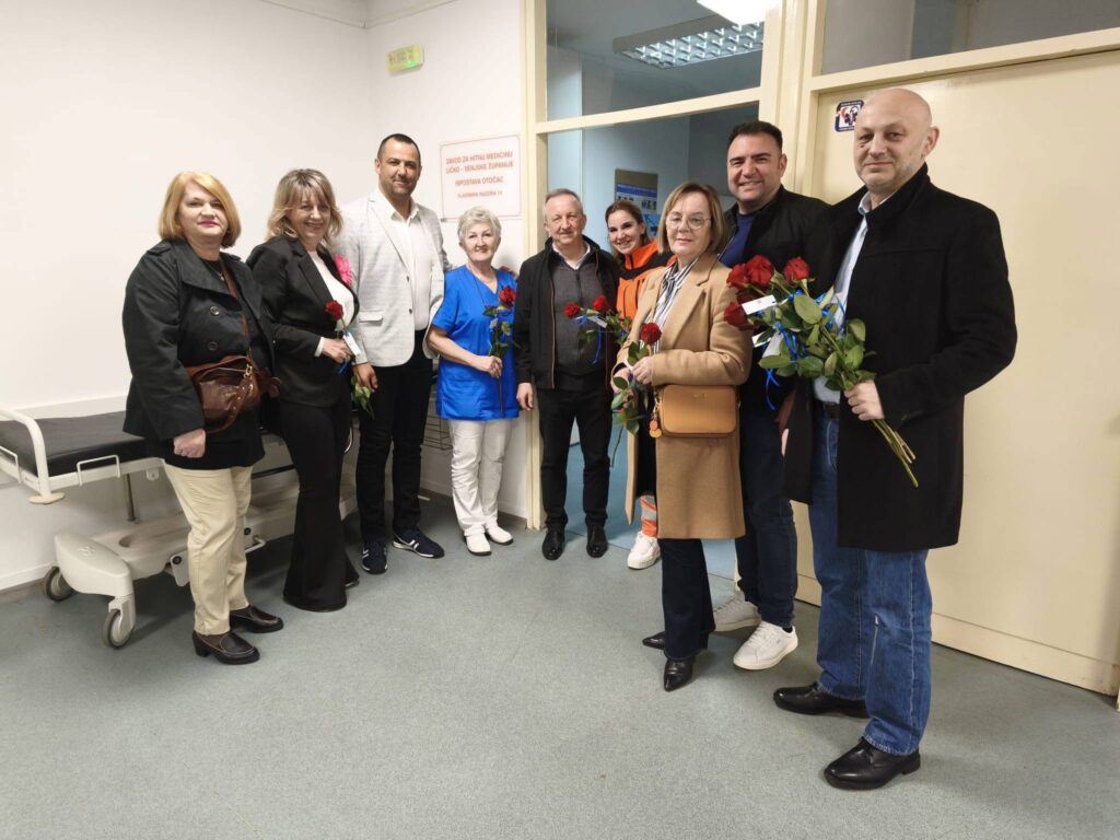 Uz simboličnu ružu i kratki razgovor posjećene su djelatnice stacionara Doma zdravlja Otočac, Doma za starije i nemoćne Otočac, trgovački centar Plodine, pekarna, kiosk Tiska i benzinska postaja INA Otočac.