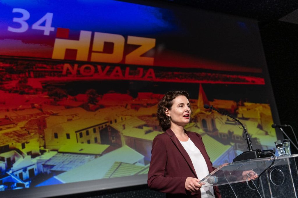 Državna tajnica Irena Petrijevčanin kao sljedeća govornica u toplom obraćanju zahvalila je članstvu i gradonačelniku na radu i razvoju Grada i stranke te obećala punu potporu u svim segmentima, najavivši početak gradnje Policijske postaje u Novalji.