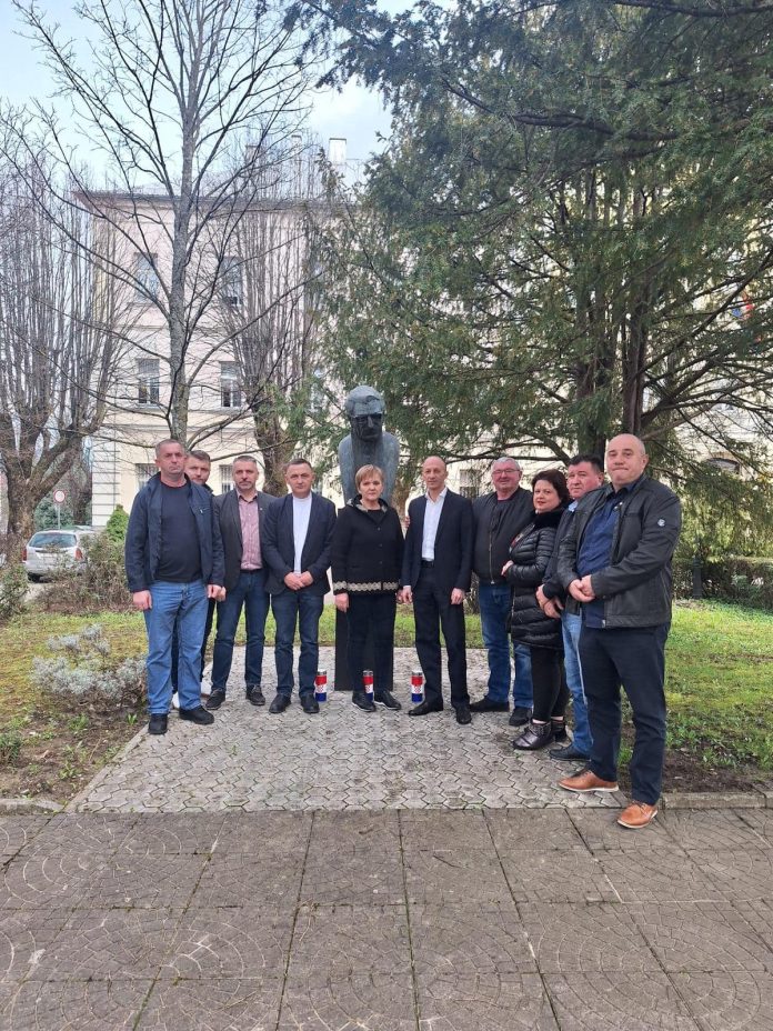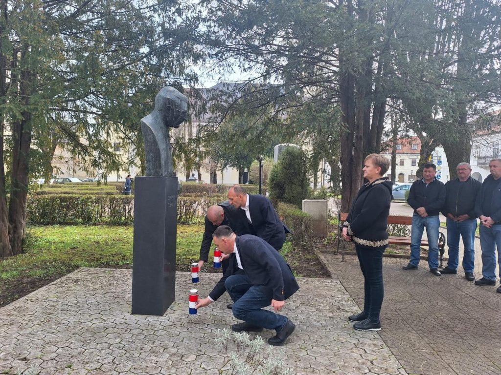 Nakon Perušića, utemeljitelji i članovi HDZ-a odali su počast prvom hrvatskom predsjedniku, zapalivši svijeće podno biste “Dr. Franje Tuđmana” u središtu Gospića, kojim prigodom se nazočnima pridružio i predsjednik Županijske organizacije HDZ-a Ernest Petry.