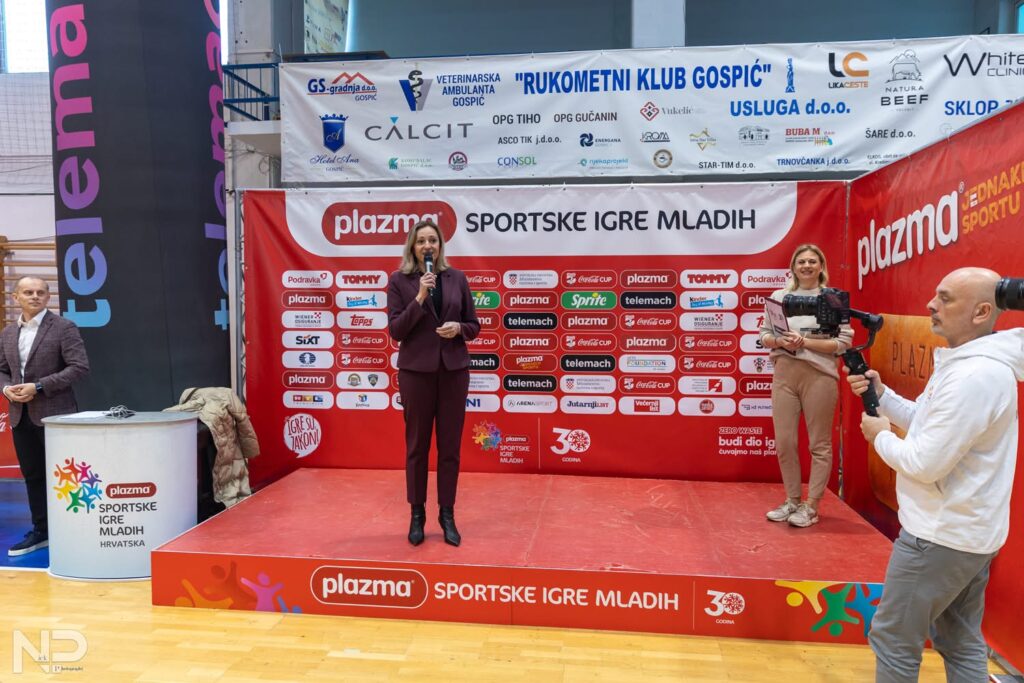 Sportska dvorana Osnovne škole Jure Turića u Gospiću ugostila je brojne mališane na velikom sportsko-edukativnom Telemach Danu sporta, manifestaciji koja u sklopu Plazma Sportskih igara mladih već tri desetljeća promiče inkluziju, toleranciju i zdrave životne navike. Svečani program započeo je paljenjem plamena koji su u dvoranu unijele mlada rukometašica i finalistica popularnog showa The Voice Kids Hrvatska, Tihana Marković, te državna pobjednica u atletici Sara Žarak..
