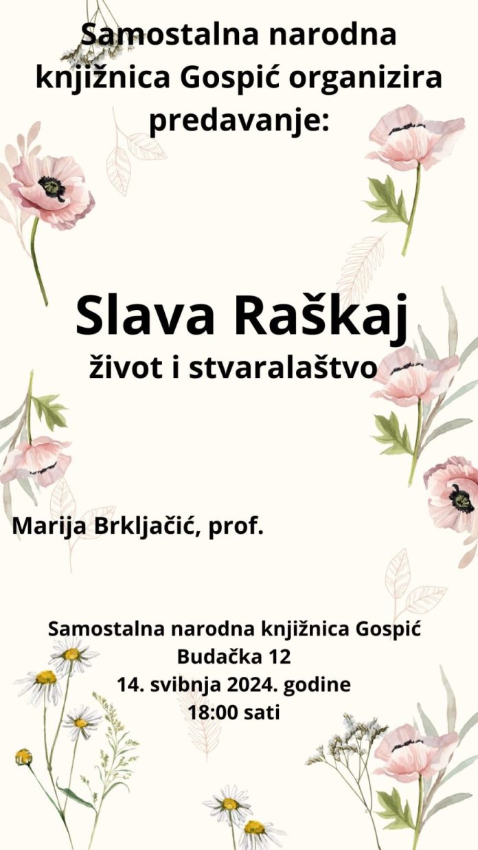 Predavanje o životu i stvaralaštvu Slave Raškaj