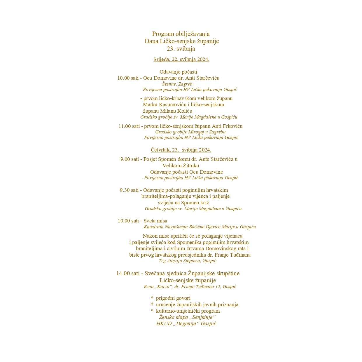 Program obilježavanja Dana Ličko-senjske županije 22. i 23. svibnja 2024. godine