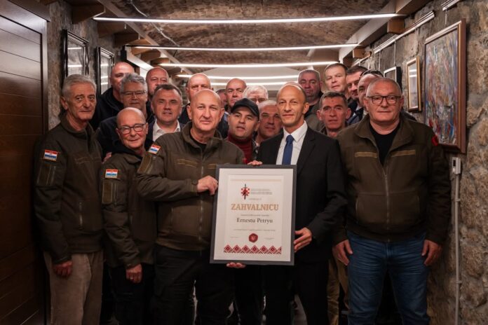 U znak zahvalnosti za doprinos i suradnju, predstavnik Udruge albanskih branitelja Hrvatske Esad Čolak uručila je županu Ernestu Petryju zahvalnicu za iznimnu podršku i promicanje vrijednosti Domovinskog rata.